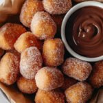 Imagine sinking your teeth into a warm, fluffy churro bite, the soft interior giving way to a lightly crisp, golden-brown exterior. As you bite down, a delightful explosion of sweet cinnamon sugar envelops your taste buds, while the rich chocolate dip beckons for another dunk. It’s a mouthwatering experience that balances textures and flavors in each delightful morsel.