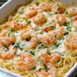 This Quick & Creamy Shrimp Pasta Bake for Dinner combines the satisfying textures of al dente spaghetti with tender shrimp, all enveloped in a luscious garlic-lemon butter sauce. Topped with gooey melted cheese and fresh parsley, each bite promises comfort and delight. Perfect for a weeknight meal or a cozy gathering, it’s easy to prepare and sure to impress. Don’t wait any longer—gather your ingredients and bring this delicious dish to life in your kitchen tonight!