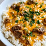 Imagine a plate filled with tender beef simmered in a rich garlic butter sauce, served over fluffy rice and blanketed in a creamy cheese sauce that’s as comforting as a warm hug. This is not just dinner; it’s Your New Favorite Cheesy Beef & Rice Dinner, where every bite is an explosion of flavor and texture that dances on your taste buds.
